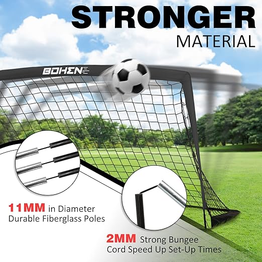 BOHEN 6x4FT/9x5FT/5x3FT Portable Soccer Goal for Kids Backyard with Carry Bag - Easy Folding Lightweight Fun for Outdoor Indoor Training Games for Teen Youth Adult