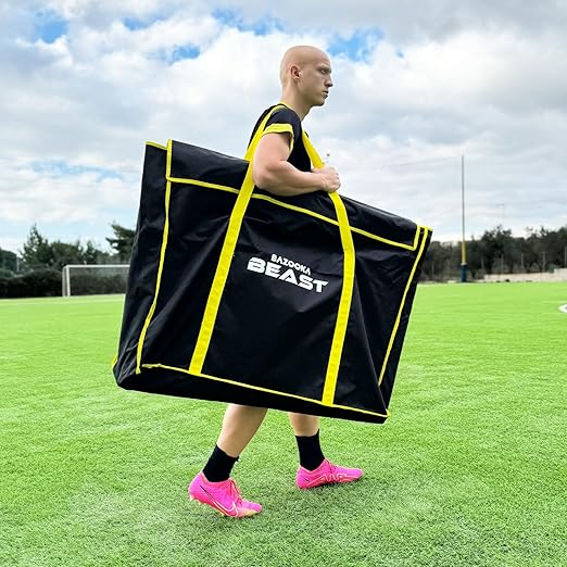 Bazookagoal Soccer Equipment Carry Bag - Durable Black Fabric with Yellow Zipper - For Coaches and Soccer Training Sessions