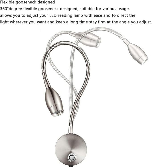 3W Gooseneck Hose LED Wall Light Hose Wall Light Bedroom Bedside Hose Small Spotlight Surface Mounted Universal Reading Light USB Dimmable Touch Wall Light (Color : Silver)