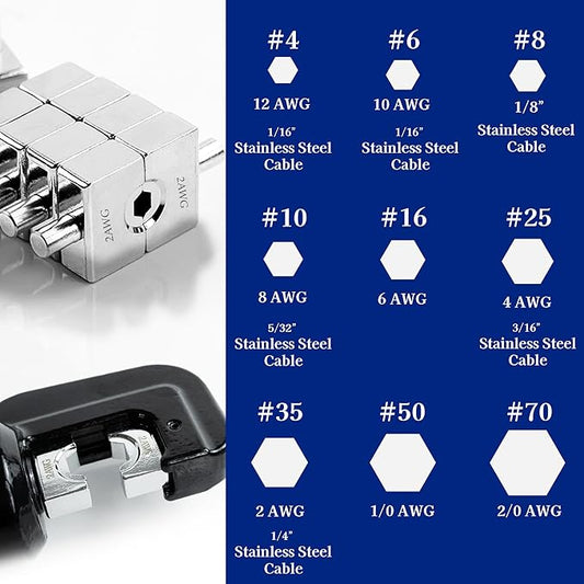 AMZCNC Hydraulic Crimping Tool Kit - with 9 US Standard Copper Cable Dies (12AWG to 20AWG) and 8 Copper Cable Dies (12AWG to 20AWG) and 18" Stainless Steel Cable Dies