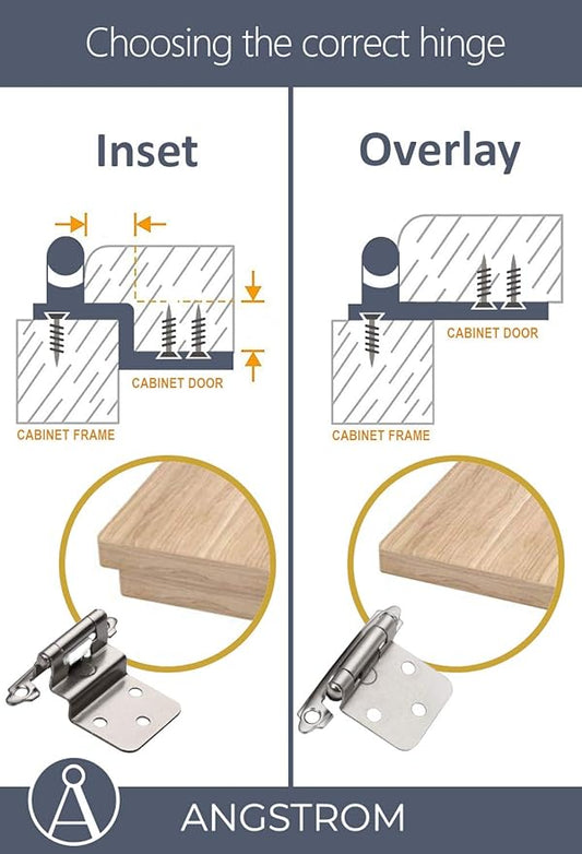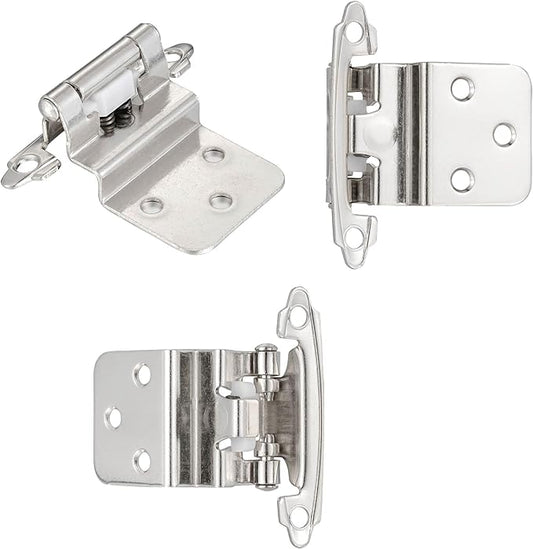ANGSTROM 2-Pack Partially Exposed Cabinet Hinges, 180-Degree Self-Closing, Surface-Mount Full Overlay (Nickel Plated)