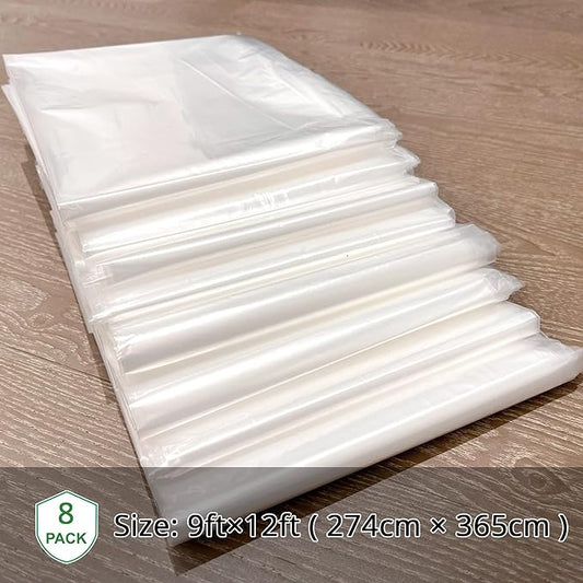 8-Pack Plastic Drop Cloth, 9x12 Feet Clear Plastic Painting Tarps Waterproof, 1 Mil Thick Drop Sheet for Furniture Couch Floor Cover