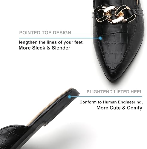 Metal Chain Decor Flat Mules for Women Closed Pointed Toe Slip on Loafers Slides Backless Mules Shoes