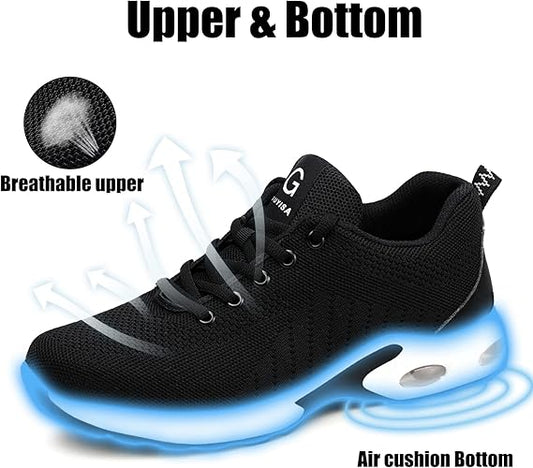 GUYISA Steel Toe Shoes for Safety Air Cushion Lightweight Sneakers Slip Resistant Industrial and Construction Work Shoes