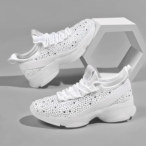 BELOS Women's Rhinestone Mesh Slip On Walking Shoes Fashion Breathable Spakle Glitter Sneaker
