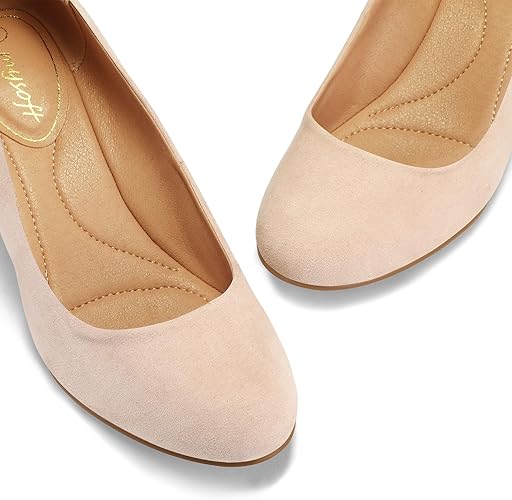 JENN ARDOR Womens Dress Pumps Ballet Chunky Heels for Women Round Toe Mid Square Block Heels Soft Slip On Pumps Shoes for Office Lady Dancer Wedding Shoes Youth 2inch