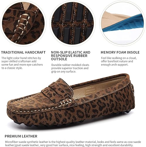 Osslue Women's Suede Leather Casual Penny Loafers Retro Ladies Moccasins Driving Mocs Comfort Slip-On Fashion Boat Shoes Classic Flats