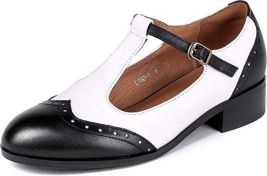 Women's Genuine Leather Mary Jane Saddle Oxford Loafers Brogue Shoes