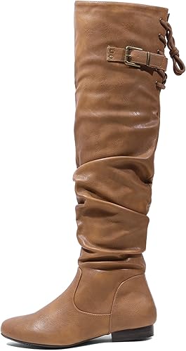 DREAM PAIRS Women's Pu Knee High Riding Combat Boots