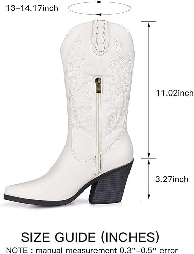 SHIBEVER Cowgirl Boots for Womens Western: Cowboy Pointy Toe Chunky Heel Embroidered Mid Calf Boot with Side Zipper