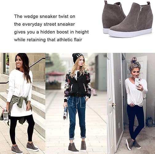 Athlefit Women's Wedge Sneakers Hidden Heel Platform Wedge Booties Hidden Wedgie Sneakers