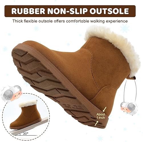 Vonair Girls Fuzzy Warm Winter Short Boots with Furry Faux Fur Lining Bootie Shoes for Toddler Little Big Kids Girls