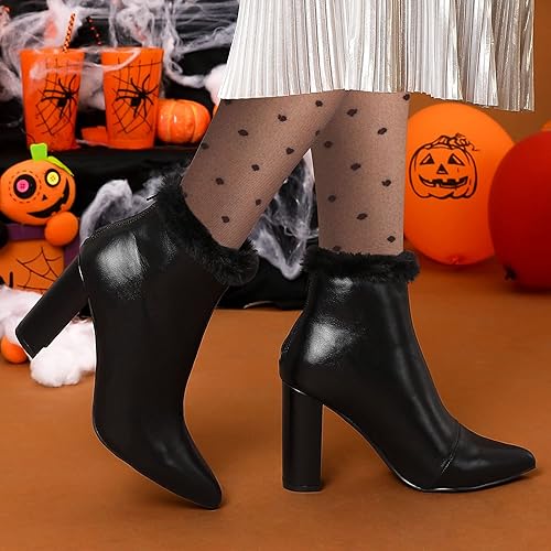 Allegra K Women's Pointed Toe Faux Fur Block Heel Ankle Boots