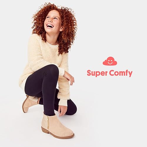 FabKids Girls Ankle Boots Short Booties Side Zipper Riding Boot Low Heels Dress Boot Shoes for Kids