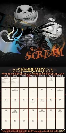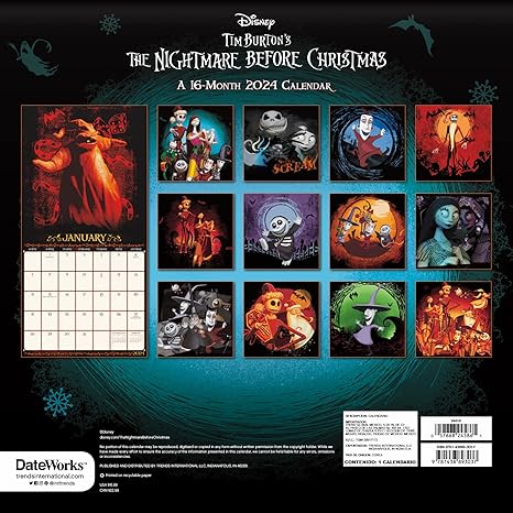 Discover your favorite characters from Disney's The Nightmare Before Christmas with this 2024 wall calendar. Enjoy stunning illustrations of Jack Skellington, Sally, Oogie Boogie, and more as you plan your year ahead. Stay organized and add a touch of fun to your everyday with this unique calendar.