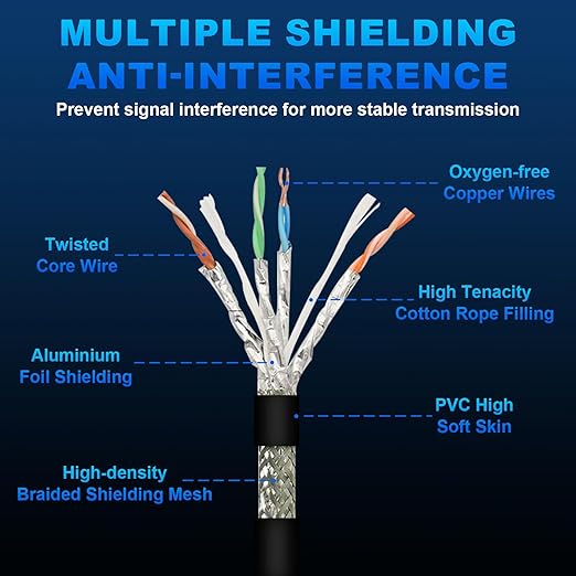 Sturdy and highly flexible PVC jacket; The outer layer of this Ethernet cable is constructed of flexible PVC material, making it resistant to stretch, oil and wear; This sturdy design is the ideal solution for demanding environments, providing longevity and reliability in various applications