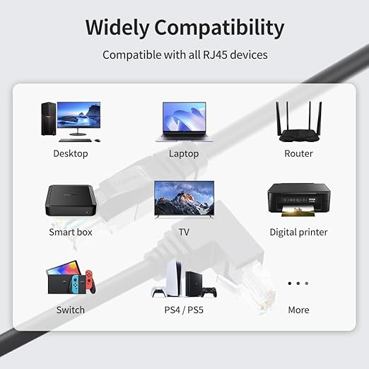 90 Degree Cat 6 Ethernet Cable Upward Angle 3.3FT RJ45 Network Patch Cord DownUpRightLeft Angle LAN Connection Cable for Router, Modem, PC, Computer, Laptop, and Smart TV, Black