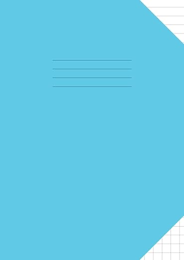 A4 Exercise Book Lined and Squares: 10mm Top Half Ruled Bottom Half Squared Large Jotter Notebook Blue Cover