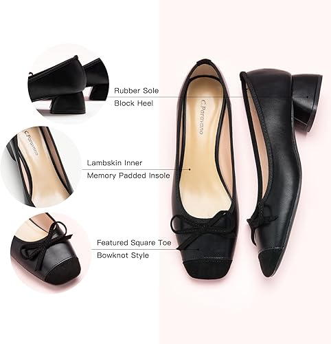 C.Paravano Women's Pump | Square Toe Low Block Heels | Closed Toe Chunky Heels | Leather Low Heel Pumps | Dress Wedding Shoes