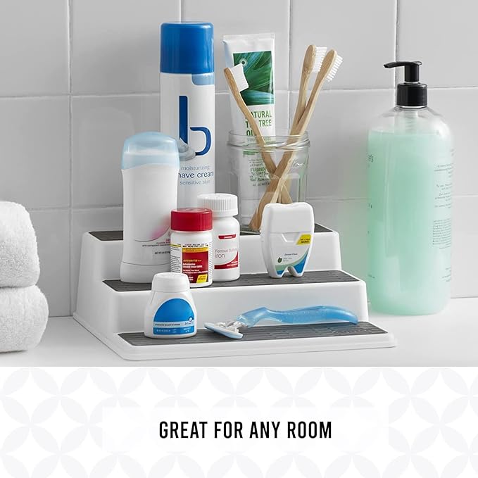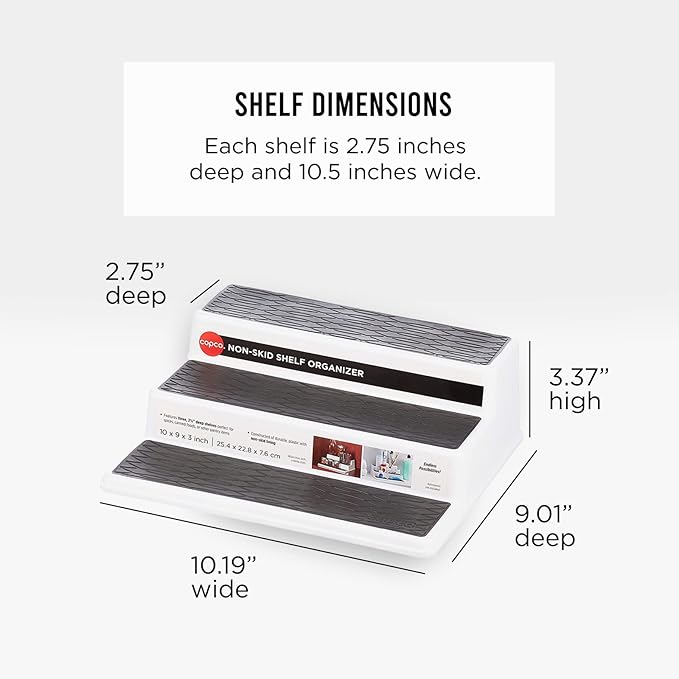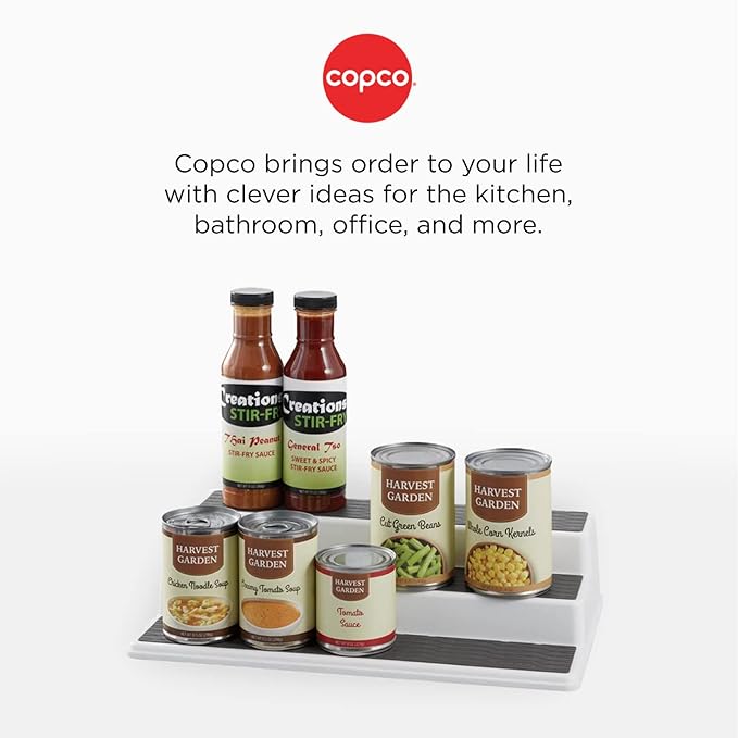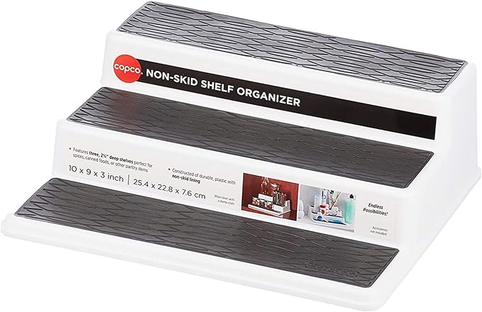 Copco Non-Skid 3-Tier Spice Pantry Kitchen Cabinet Organizer, 10-Inch, White/Gray