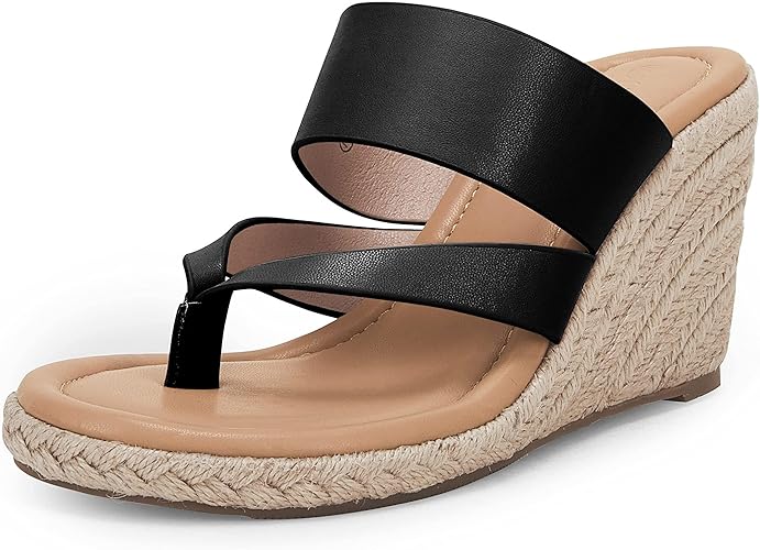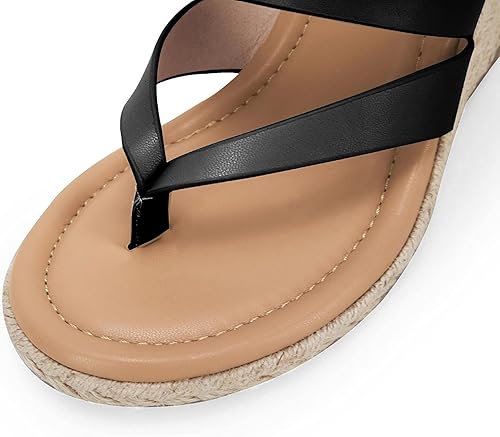 Coutgo Women's Espadrille Wedge Sandals Platform Thong Leather Strap Slides Backless Slip On Summer Casual Flip Flops