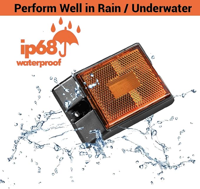 The CZC AUTO LED Amber Side Marker Lights come as a 2-pack of sealed, submersible clearance reflector lamps designed for 12V systems. These waterproof LED lights provide reliable visibility for boat trailers, trucks, marine vehicles, and RVs, enhancing safety during night driving or adverse weather. Their durable construction resists water and corrosion, ensuring long-lasting performance in harsh environments. Ideal for professionals seeking dependable, high-quality trailer lighting solutions.