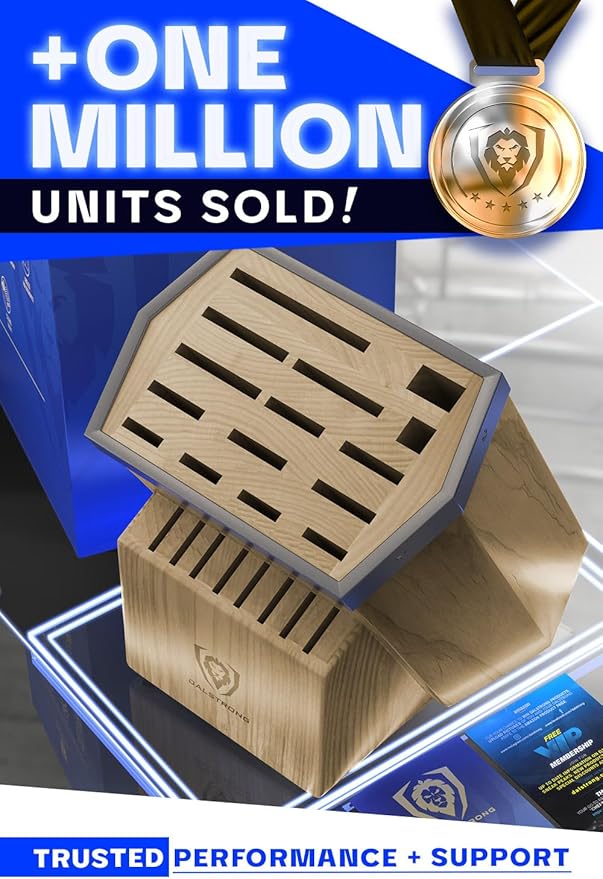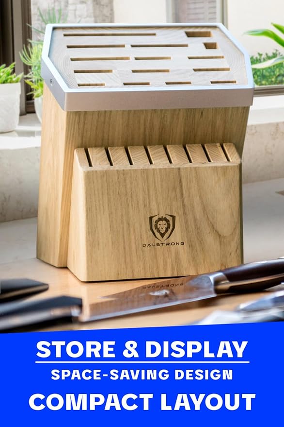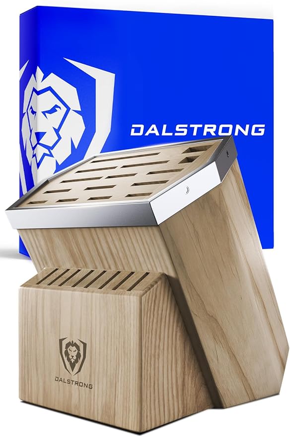 DALSTRONG Universal Knife Block - 23 Slots - Premium American Ash Wood - Aluminum Alloy Rim Kitchen Set - Lion Head Logo Badge - Premium Craftsmanship Knife Set - Angled For Ergonomics - Cleans Easily