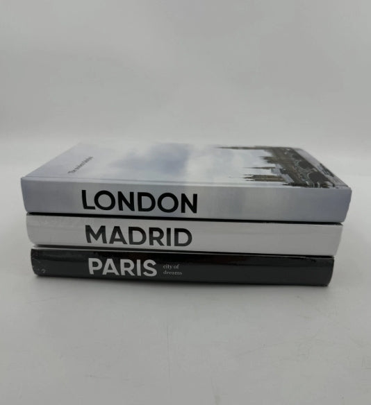 This set of two decorative hardcover books features a city theme, designed to enhance home decor with a sophisticated urban touch. Each book contains blank pages, making them versatile for use as journals, sketchbooks, or stylish accent pieces. Crafted to blend seamlessly with various interior styles, these books offer both aesthetic appeal and functional potential for creative expression or display.