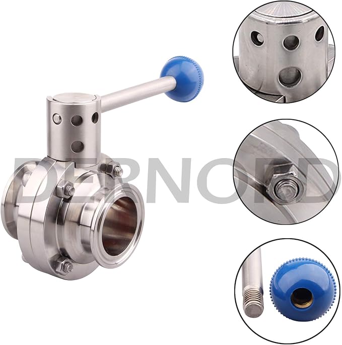 DERNORD Sanitary Butterfly Valve with Pull Handle Stainless Steel 304 Tri Clamp Clover (2 Inch)