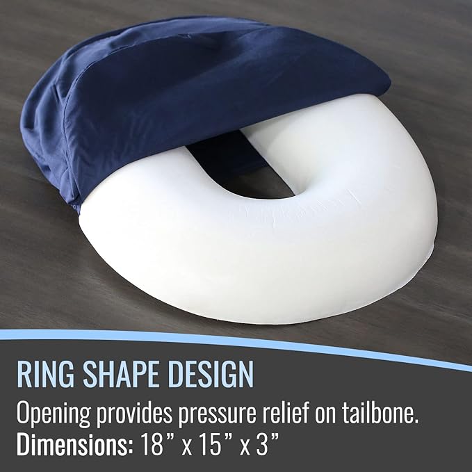 DMI Seat Cushion Donut Pillow and Chair Pillow for Tailbone Pain Relief, Hemorrhoids, Prostate, Pregnancy, Post Natal, Pressure Relief and Surgery, 18 x 15 x 3, Navy