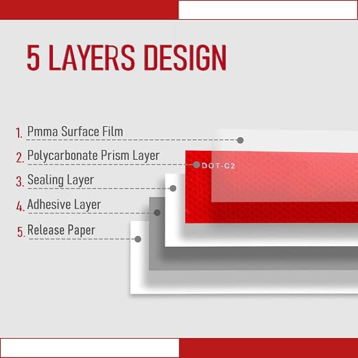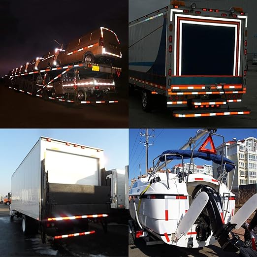 About this itemDOTC2 REFLECTIVE TAPE 2 x 100FT reflective safety tape Alternates between Red White meet the federal requirements for trucks Suit for trailers vehicles trucks boats road marking driveway tractors bicycles motorcycles and mailboxesEXTRA REFLECTION AND VISIBILITY DOTC2 red white reflector tape is equipped with a highly visible diamond pattern It provides that extra visibility when needed on dark roads and catches the light from any angleSTRONGER ADHESIVE WATERPROOF reflective tape is made of waterproof PET material with commercial grade adhesive It can resist dirt grease grime rain and sunfading and stick excellently even in the wet cold snowy weatherDOTC2 APPROVED Each red white reflective strip is marked with DOTC2 no worry about safety and regulations its approved and exceeds of DOTC2 standardsAPPLICATION VARIOUS Conspicuity reflective safety tape can be used indoor or outdoor perfect for sign marking cargo garage door pickup truck helmet different types of trailers truck mailbox bicycle car auto RV backpack etc