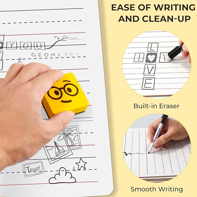 Double Sided Dry Erase Boards - LinedPlain, Ohuhu 25-Pack 9 x 12 Inch Whiteboards Set, Including 25 x Lap Board, 25 x Black Markers, 25 x White Boards Eraser for Students, Classroom, School
