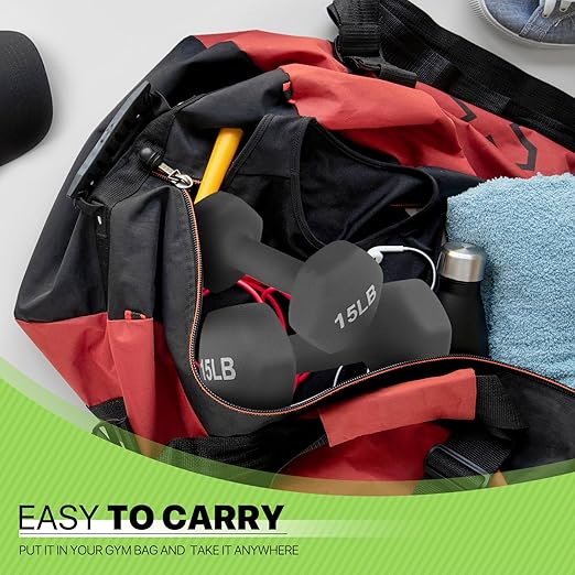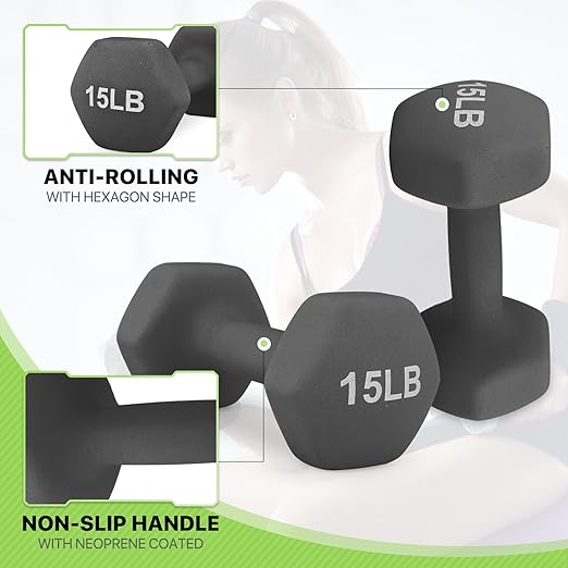 About this itemHigh Quality Material Constructed of solid cast iron core and neoprene coating to add more durability and stability Will not break or bend after repeated use The neoprene coating is extremely durable easy to clean and reduces noise during workoutErgonomic Design With bright colors and easytoread numbers using training weights has never been easier or more fun The neoprene material coating makes it gentle to grip and prevents calluses during use you will not feel uncomfortable due to sweatingAntiRoll Design The neoprene coating on dumbbells offers a comfortable and secure grip and protects fitness equipment from getting damaged The hexagonal shape of the dumbbell heads prevent the dumbbells from rolling away when setting them down to perform other exercisesCompact and Convenient With an antirolling hexagon design and easy to stack so they take up minimal space Ideal for home use travel outdoors indoors or the gym you can take these gym accessories everywhereVersatile and Multipurpose Our dumbbell weights are sold in pairs aid in exercises that burn calories and help you tone and maintain strength ideal for fitness weight loss and orthopedic therapy they also help improve stamina and muscle mass