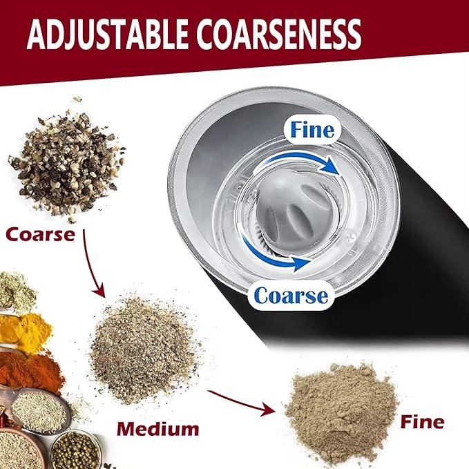 Effortless precision: Easily grind pepper with just the touch of a button, allowing for precise seasoning of your dishes.