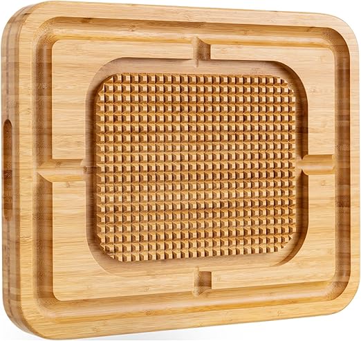 About this itemMADE FOR MEAT LOVERS When youve spent hours cooking your meat to perfection you need a bamboo cutting board that allows you to extract every ounce of flavor Thats why weve combined the finest materials and craftsmanship to create a design youll never want to be without againSTABILIZES STEAK WHILE CARVING Our eletecpro chopping block has more features than other boards The large 15 thick butcher blockstyle bamboo cutting board provides stability while cutting This cutting board with a grid grip in the center which will hold your steak brisket and turkey firmly in place allowing you to cut perfect slices and safely work your magicORGANIC BAMBOO BPA FREE The board is made of natural and organic bamboo material Its totally green ecofriendly and biodegradable Ecofriendly is not only a trendy concept but it is also safe for you your friends your pets and your family No more worries about BPA or other chemicals in plastic cutting boards from now onEXTRA LARGE SIZE 17 x 13 x 15 handles all your food preparation needs and enjoys a tough yet elegant space for meat cravings Juices running off due to the deep grooves around the edge Ideal for carving roasts you can also flip it over and use it as a serving board with finger foods or sushi on it and the indented handles on either side provide a grip for easy carrying and servingADD ALLURE TO ANY EVENT If youre planning a party or event and are looking to wow your guests with your food preparation or serving a bamboo meat cutting board is a clear choice This is a design trend that will continue increasing in popularity as many restaurants now prefer to present their meals on a board for that special rustic charm