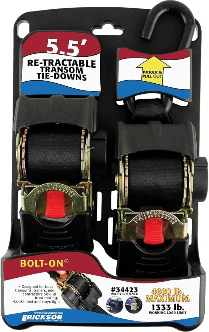 Erickson 34423 Pro Series 2" x 5.5' Bolt-On Retractable Ratcheting Tie-Down Strap, (Pack of 2)