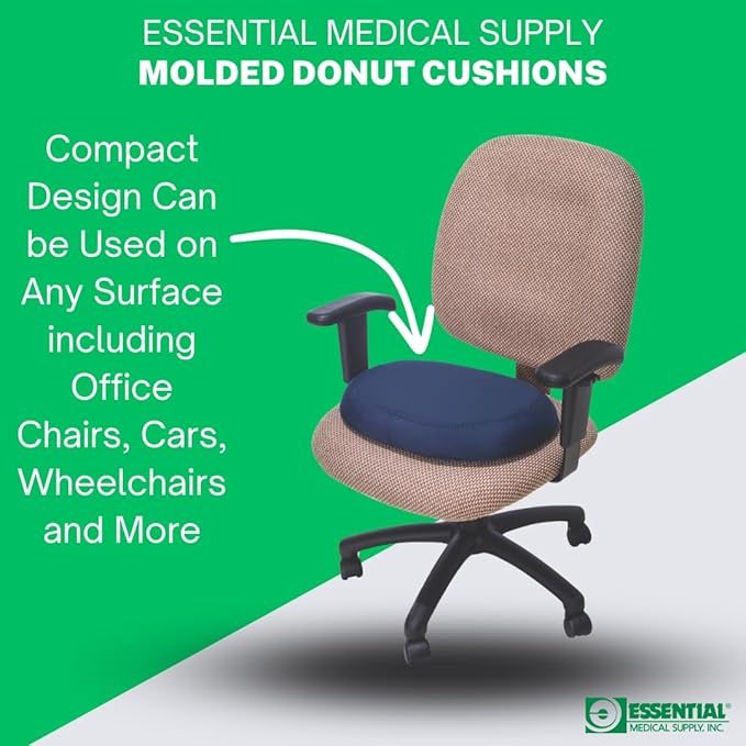 SUPPORT AND COMFORT - The Essential Medical Supply Molded Donut Cushion provides superior support and comfort for those suffering from hemorrhoids, tailbone pain, or other sitting discomforts. The cushion's molded foam design helps alleviate pressure on sensitive areas while promoting proper posture.