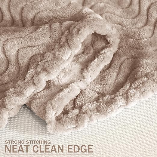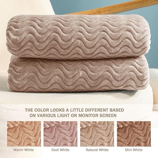 Exclusivo Mezcla Camel Fleece Throw Blanket for Couch Bed, Super Soft Cozy Blankets with Decorative Wave Textured, Lightweight Plush All Season Use, 50x70 Inches