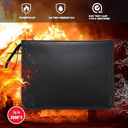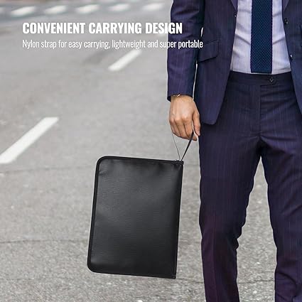 About this itemProtect Your Important Documents And Valuables This fireproof and waterresistant document organizer provides maximum protection for your documents and valuable items including passports licenses receipts cards USB disks certificates letters land and property titles latest tax filing jewelry cash money and morePremium Materials Constructed from high quality 3 layers nonitchy silicone coated fiberglass can withstand temperatures as high as 2000F which keeps the interior temperature safe The outer layer provides basic water protection and shields contents from water damageLarge Capacity File Storage 13 pockets expanding file folder can hold letters and A4size documents large enough to keep your important documents securely Colored labels easy to classify files and help to quickly find the objects you want A hookandloop closure helps keep your papers from slipping outConvenient Portable This versatile fireproof bag keeps all your valuables in one place Its lightweight and super portable protects your valuables anywhere at home in the office school in the car out camping travel etcWrist Strap Features a nylon strap for comfortable carrying by hand allows you to carry the bag around with you