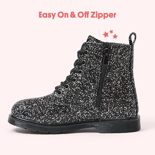 FabKids Girls Fashion Ankle Boots Cute Combat Boots Lace Up Non-Slip Short Boots for Toddler Little Kid Big Kid