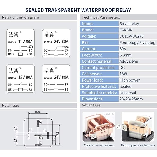 FARBIN Air Horn Relay Wiring Harness Kit 12V 80 AMP for Car Truck Motorcycle (Relay 4 pin Single Horn Wiring Harness, 12V)