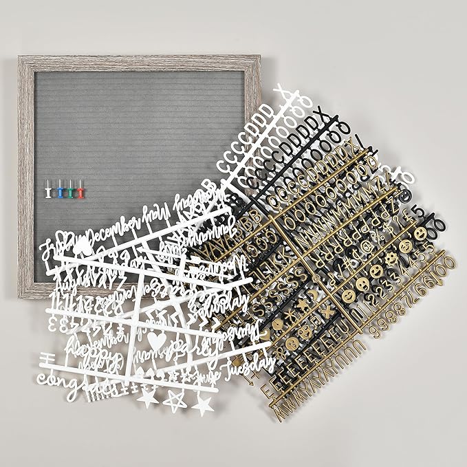 Felt Letter Board with 600 Letters, Numbers, Symbols - 12x12 inch Changeable Message Board with Wooden Frame Wall Mount (Grey)