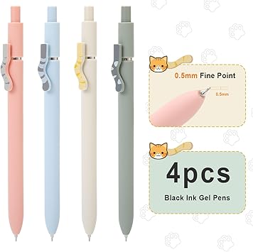 About this itemUnique Cute Kawaii PensYou will get 4PCS Gel PensEnough quantity to meet your different needs The 05 mm pens writes fine lines and the ink flows smoothly and provides you with smooth writingQuickdrying InkThe tip of the gel pens consists of a 05mm fine point pen which is smooth and continuous in ink The quickdrying ink is immediately dry and will not be smeared keeping your books or paintings clean and tidyPractical Pen ClipEach aesthetic pen has a durable clip that lets you easily fasten it to a notebook binder or pocketComfortable GripCat pens feature a soft grip that brings a super soft touch feeling which makes each gel pen easy and comfortable to holdIdea GiftFashion colorful design with an ergonomic soft touch will bring people a comfortable and good mood writing experience it will be a unique cute cat pens gift for kids teens adults students and teachers on Birthday Childrens Day Teachers Day Christmas