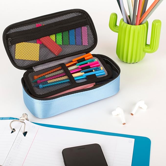 Five Star Pencil Pouch, Pen Case, High-Capacity Zipper Pouch, Storage Organizer for School Supplies Earbuds Chargers Cables Makeup, Blue/Denim