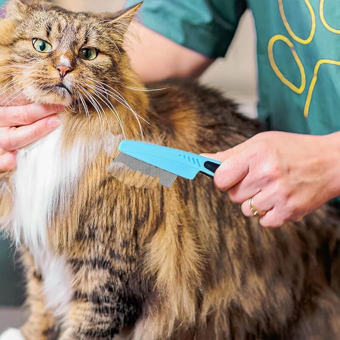 Flea Comb with Rubber Handle, Flea and Tick Combs for Dogs Cats, Dog Comb for Grooming