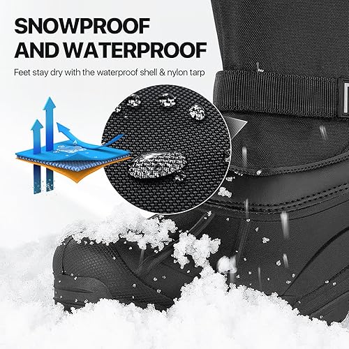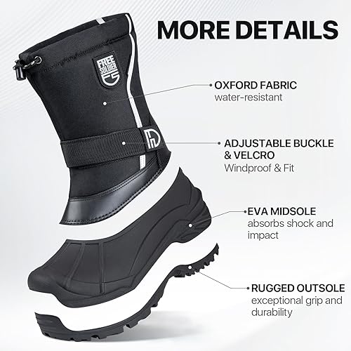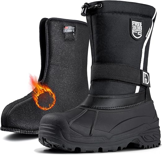 FREE SOLDIER Mens Snow Boots Insulated Waterproof Hiking Winter Shoes Nonslip Outdoor Ankle Cold Weather Boots