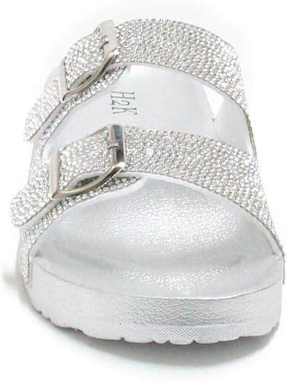 H2K Womens Glitter Double Buckle Adjustable Comfort Slip On Slide Sandals Espen
