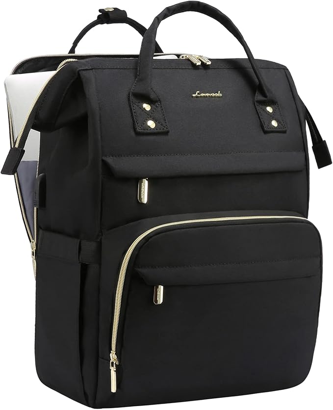 LOVEVOOK 17.3 Inch Laptop Backpack, Large Travel Backpack for Women, Water Resistant Teacher Backpack with Laptop Compartment, Professional Business Work bags with Charger, Black