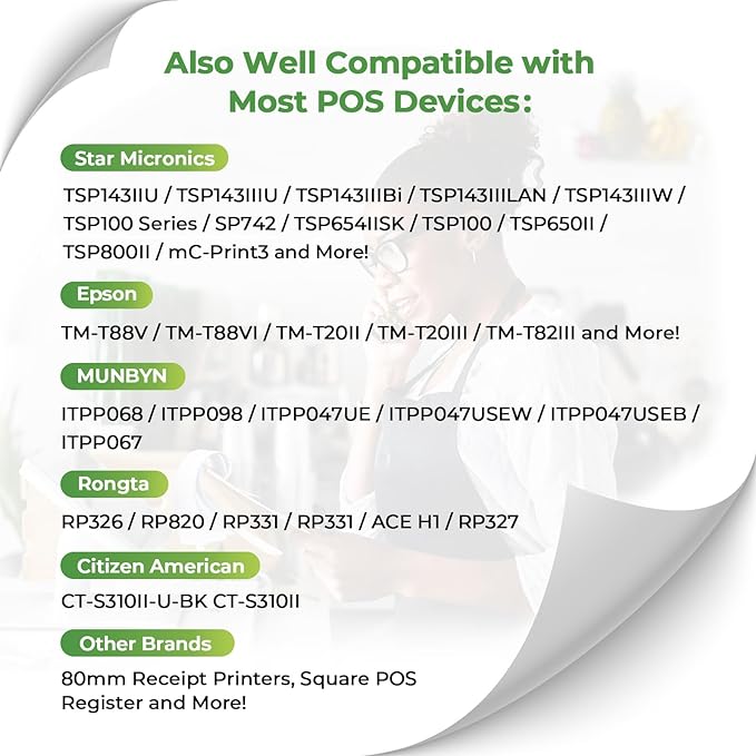 MUNBYN Thermal Paper 3 1/8 x 230ft, 10 Rolls Receipt Paper Work for Star Micronics TSP100 TSP143 Epson 80mm Receipt Printer Square POS Register, 80mm Thermal Receipt Paper, BPA Free, Plus Version