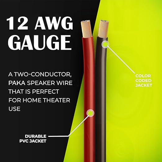 PAKA TOOLS Speaker Wire (100 Feet), Copper Clad Aluminum, CCA Thick Gauge Copper Wire for Stereo, Surround Sound, Home Theater, Radio (BlackRed, 100 Feet,one Spool) (12 Gauge)